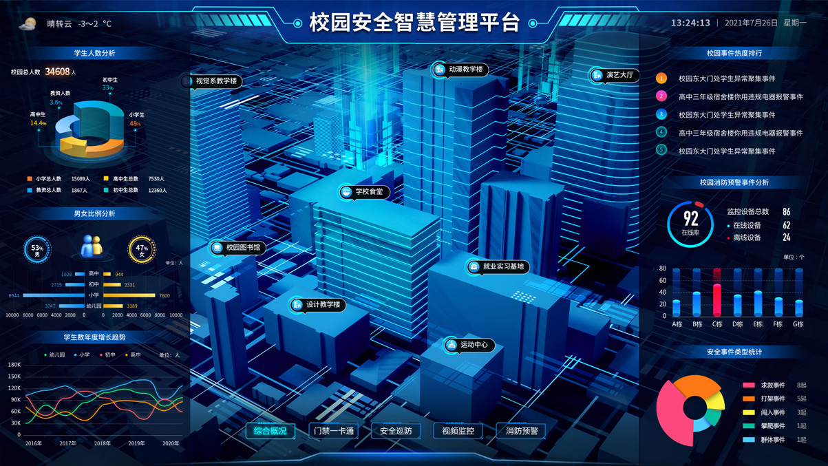 全方位立體式還原院區(qū)實(shí)貌,分圖層對院區(qū)的區(qū)域、建筑、單位、安防設(shè)備、管理設(shè)備、警情等進(jìn)行查看、監(jiān)控和跟蹤;通過院區(qū)各類安防管理設(shè)備實(shí)時獲取各重點(diǎn)監(jiān)控區(qū)域的監(jiān)控數(shù)據(jù),對各種突發(fā)事件進(jìn)行報警。通過人臉識別、車牌識別、行為識別、武器管理、營區(qū)設(shè)備等各類傳感器,對人、車、物及其行為的全面感知,保障營區(qū)安全。 -